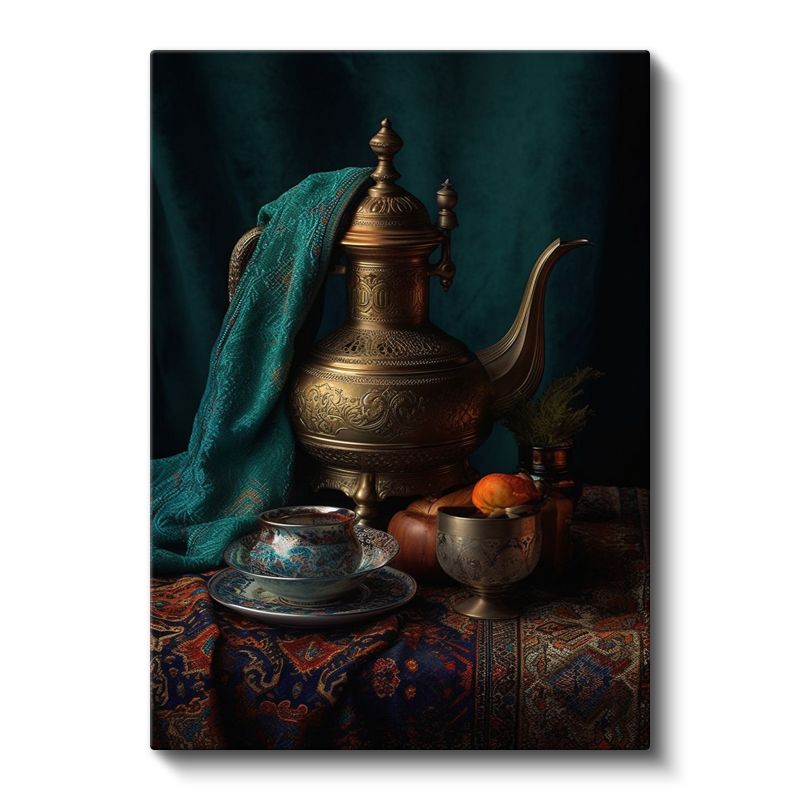 Osmanlı Çaydanlığı - Geleneksel Bakır İşlemeli Kanvas Tablo