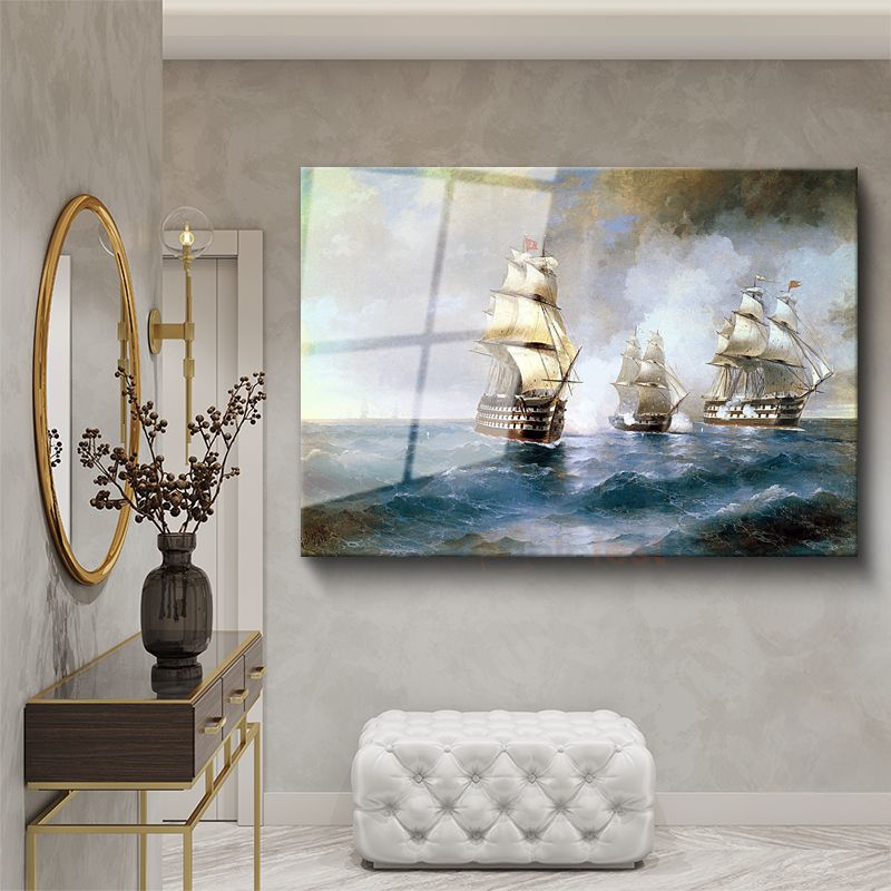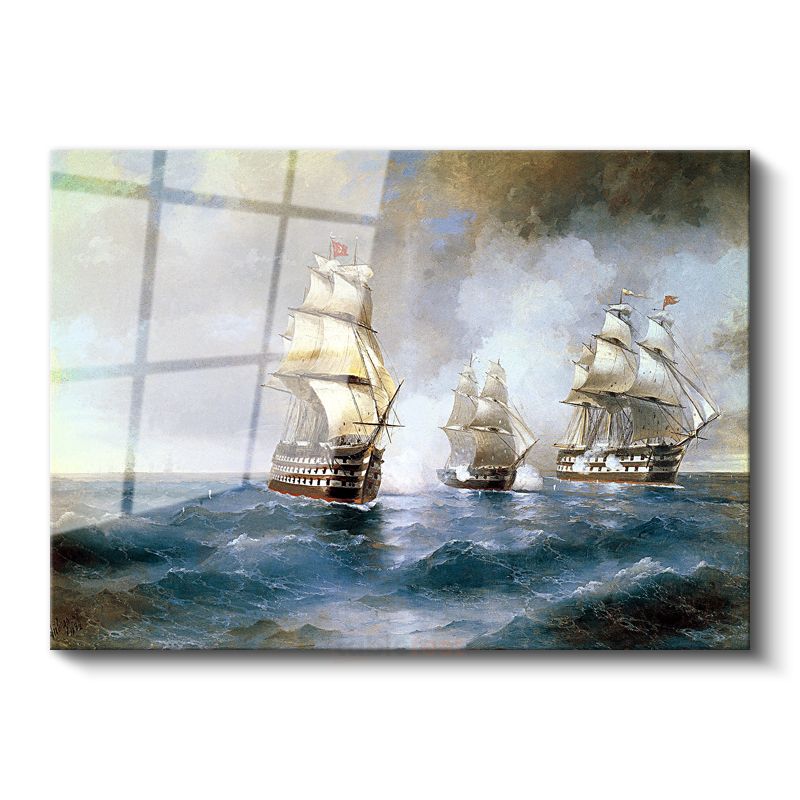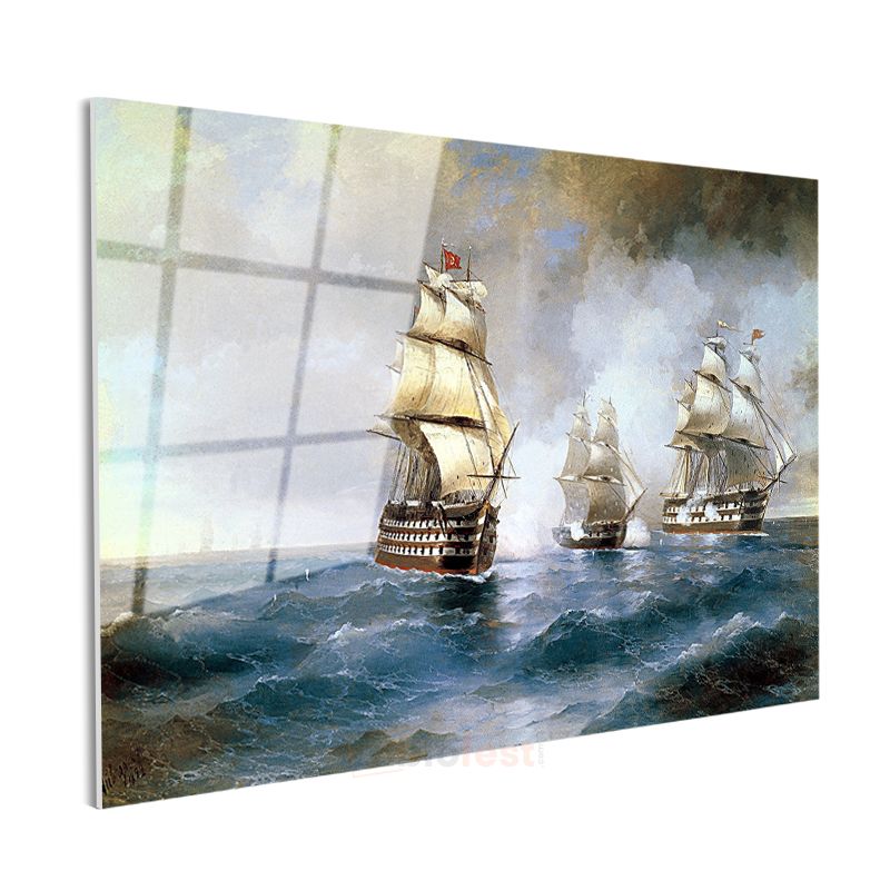 Osmanlı Donanması - Açık Denizde Savaş Gemileri Cam Tablo