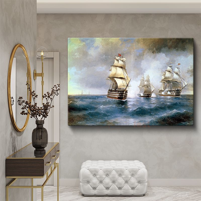 Osmanlı Donanması - Açık Denizde Savaş Gemileri Kanvas Tablo