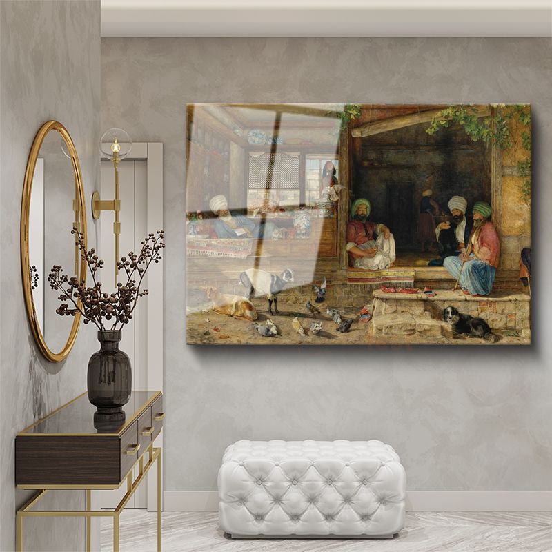 Osmanlı Kahvehanesi - Geleneksel Sohbet Ortamı Cam Tablo