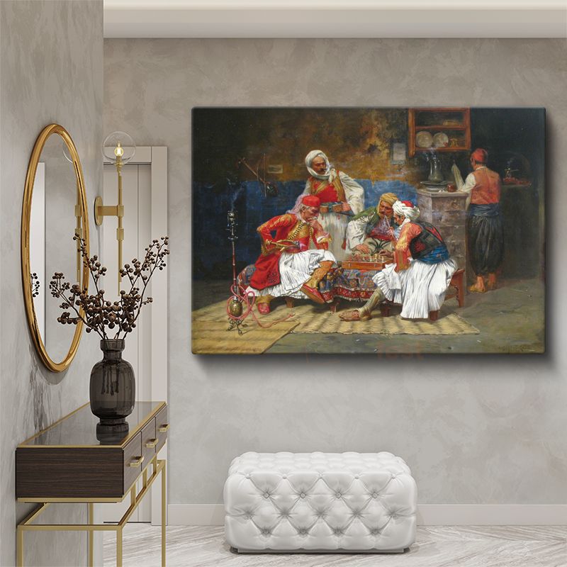 Osmanlı Kahvehanesi - Satranç Oynayanlar Kanvas Tablo