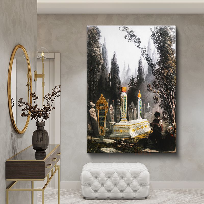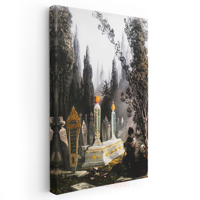Osmanlı Mezarlığı - Selvi Ağaçları Arasında Türbe Kanvas Tablo