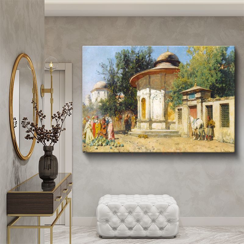 Osmanlı Mimarisi - Tarihi Çeşme ve Cami Manzarası Kanvas Tablo