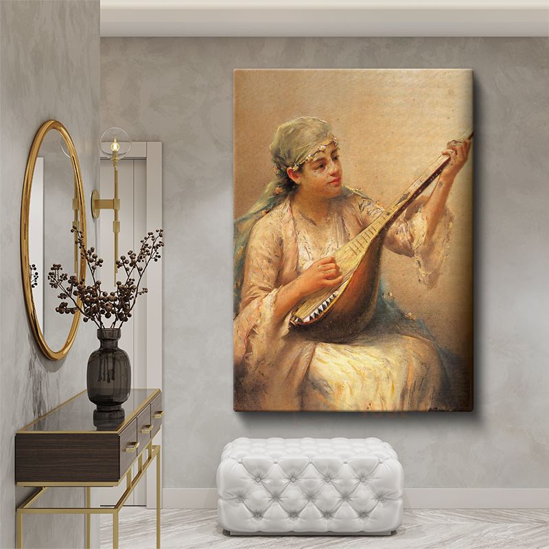 Osmanlı Müzisyeni - Saz Çalan Kadın Kanvas Tablo