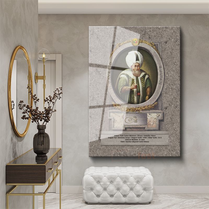 Osmanlı Padişahları - Fatih Sultan Mehmed Portresi Cam Tablo