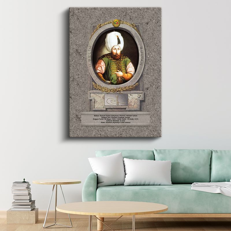 Osmanlı Padişahları - Kanuni Sultan Süleyman Portresi Kanvas Tablo