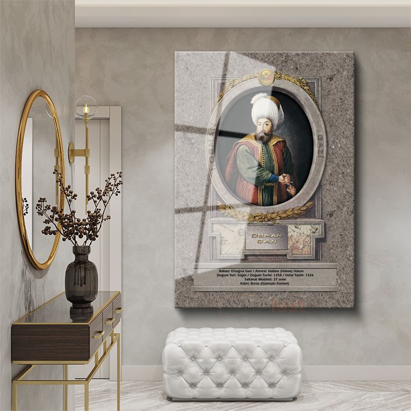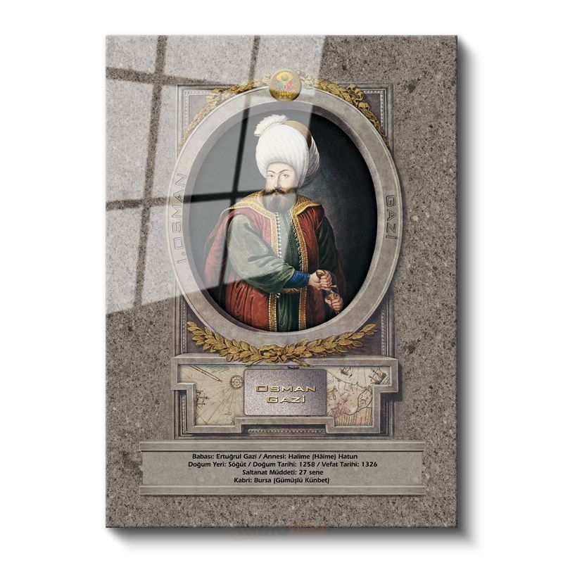 Osmanlı Padişahları - Osman Gazi Portresi Cam Tablo