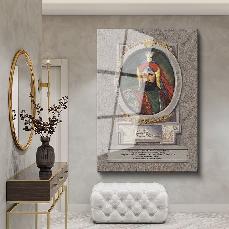 Osmanlı Padişahları - Sultan I. Ahmed Portresi Cam Tablo