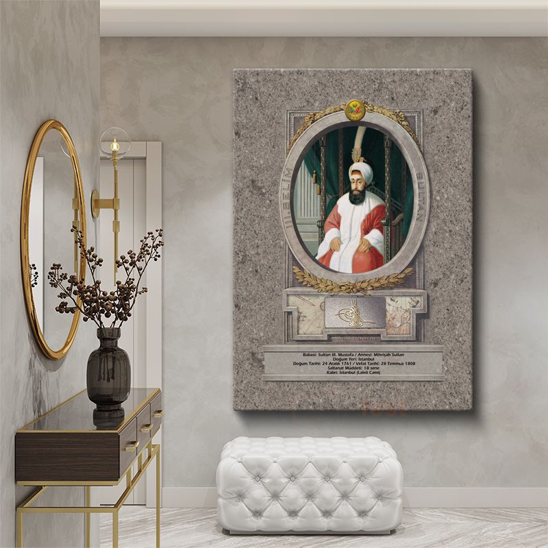 Osmanlı Padişahları - Sultan III. Mustafa Portresi Kanvas Tablo