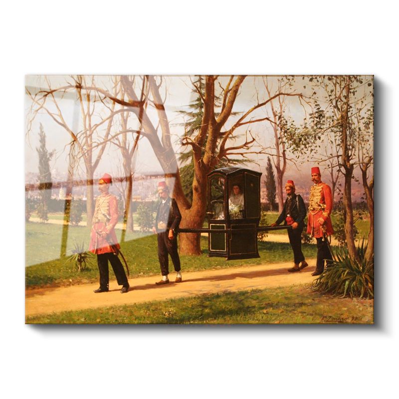 Osmanlı Sarayı - Tahtırevan Taşıyıcıları Cam Tablo