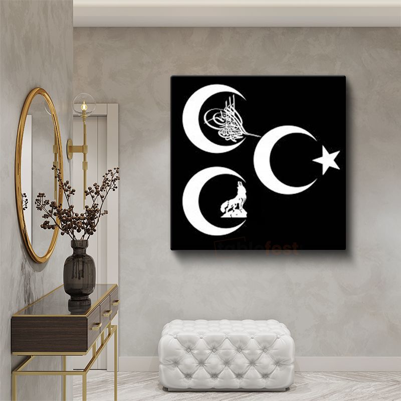 Osmanlı Sembolleri - Hilal ve Tuğra Kompozisyonu Kanvas Tablo