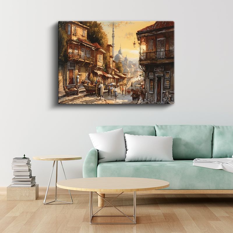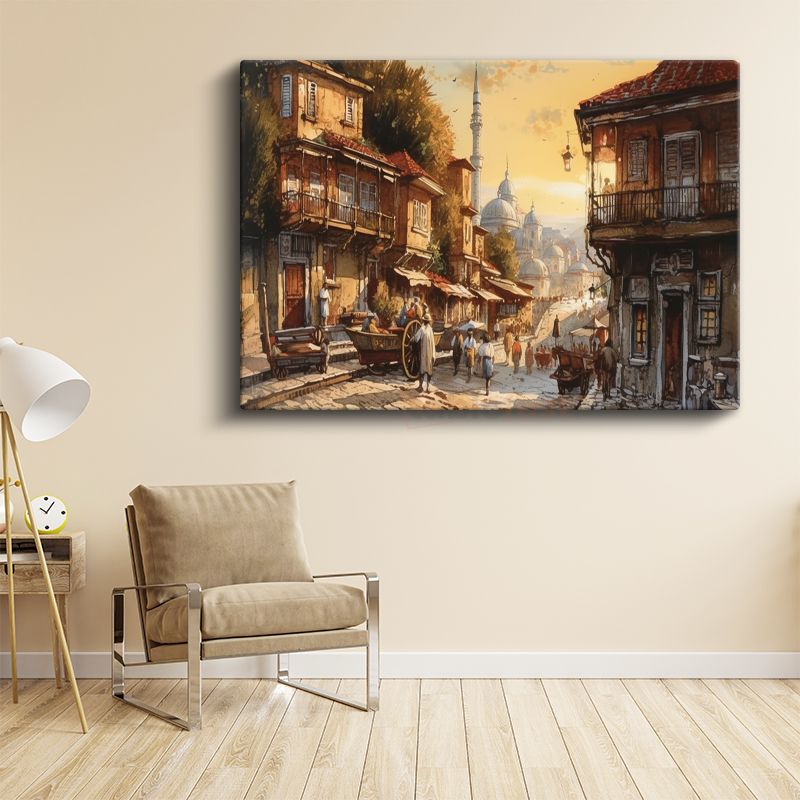 Osmanlı Sokağı - Cami Manzaralı Ahşap Evler Kanvas Tablo