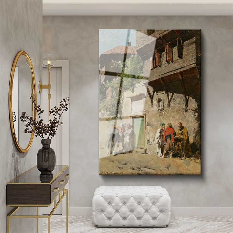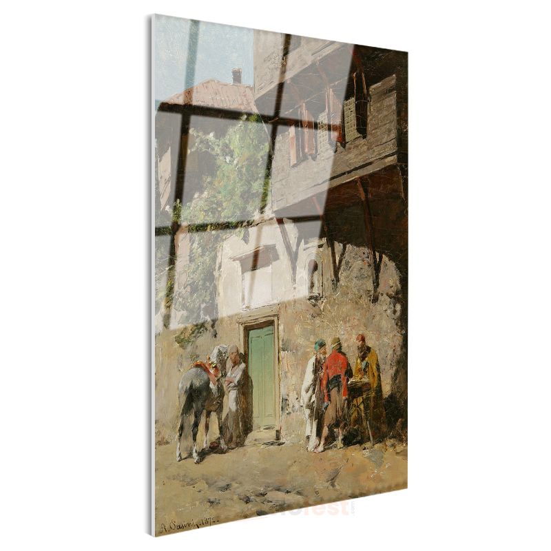Osmanlı Sokakları - Ahşap Evler Önünde Sohbet Cam Tablo