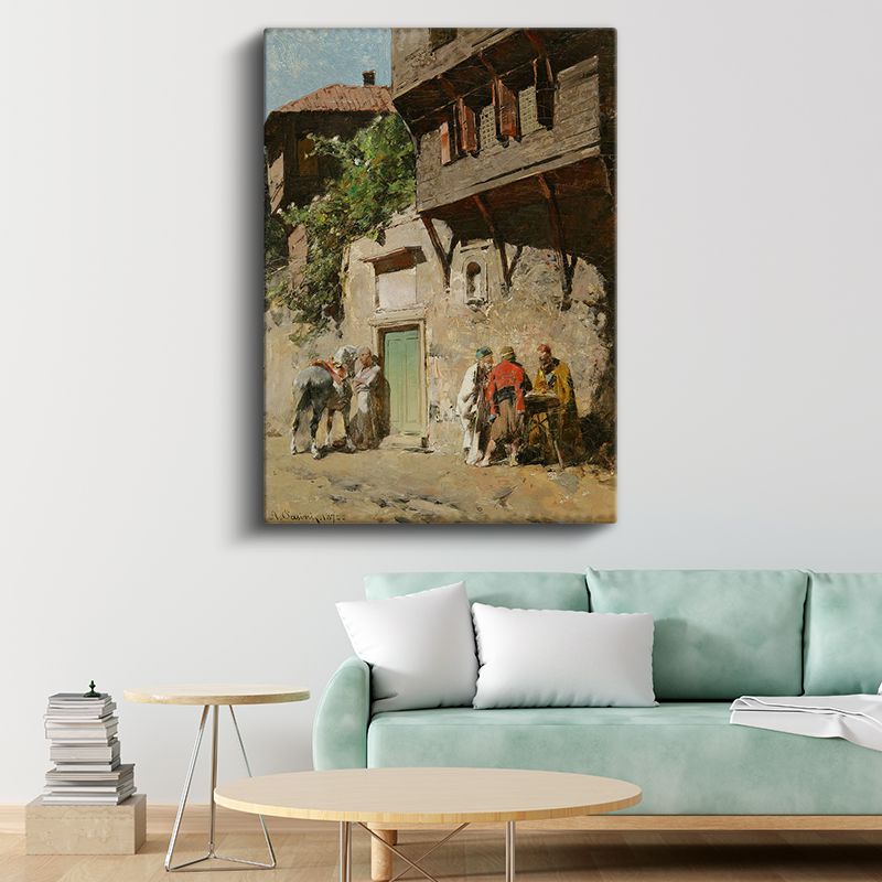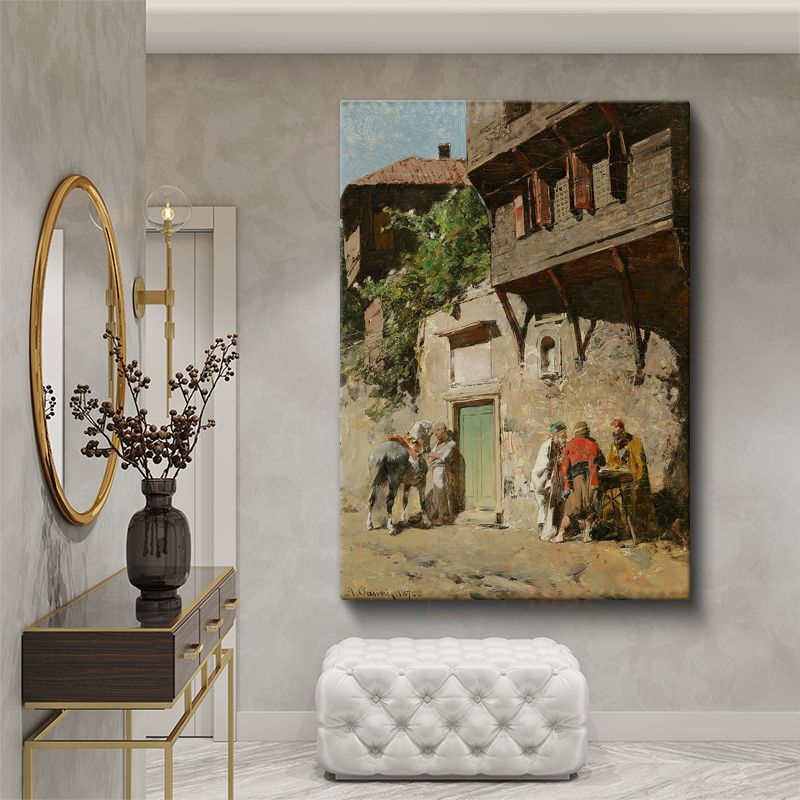 Osmanlı Sokakları - Ahşap Evler Önünde Sohbet Kanvas Tablo