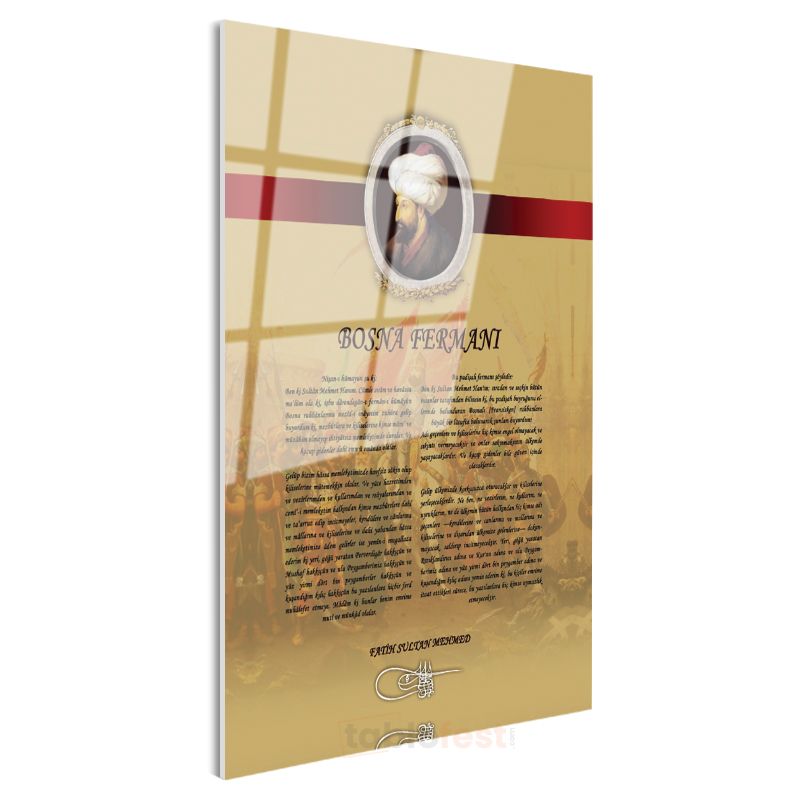 Osmanlı Tarihi - Fatih Sultan Mehmed Bosna Fermanı Cam Tablo