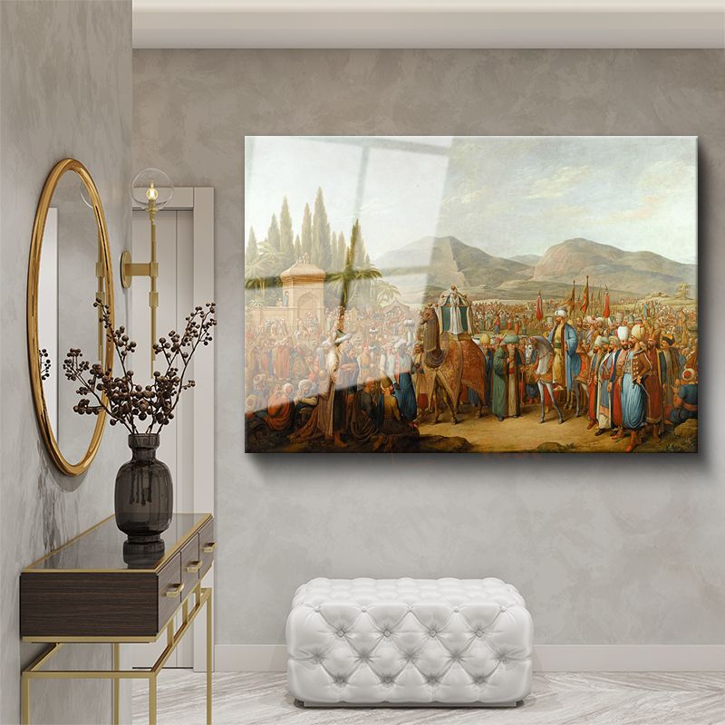 Osmanlı Töreni - Deve Alayı ve Kalabalık Cam Tablo