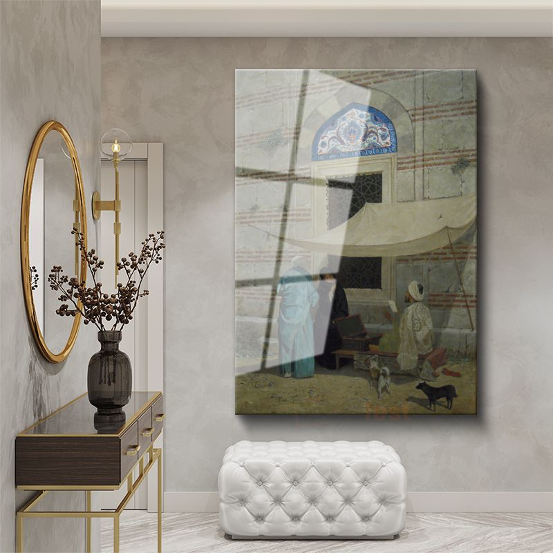 Osmanlı Yaşamı - Cami Önünde Satıcılar Cam Tablo
