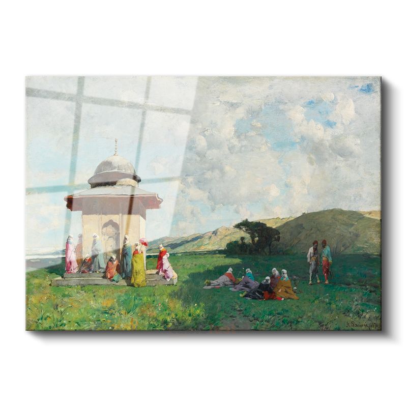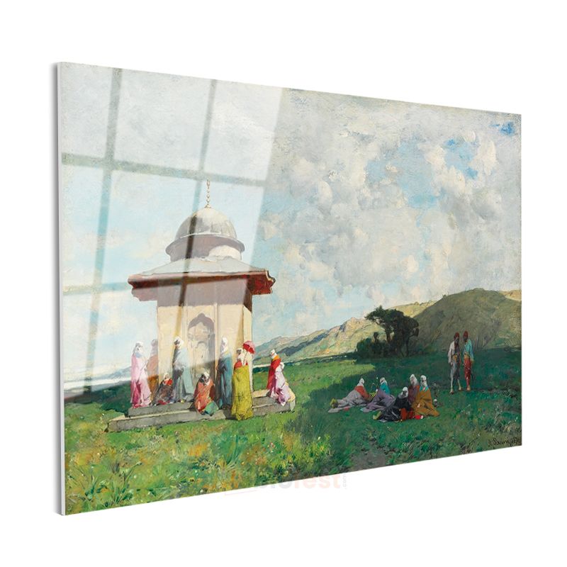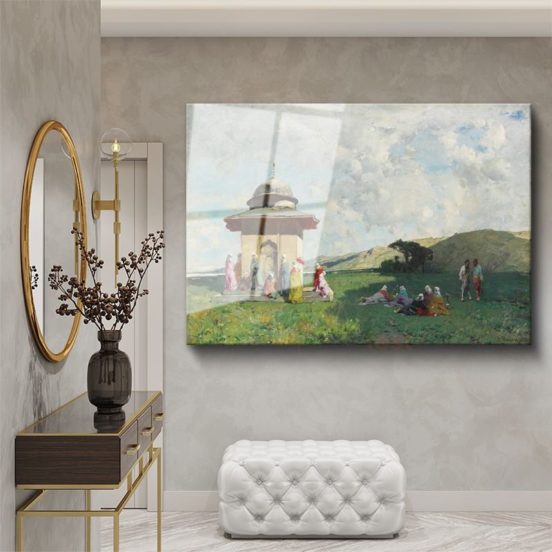 Osmanlı Yaşamı - Çeşme Başında Toplanan İnsanlar Cam Tablo