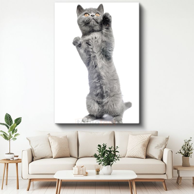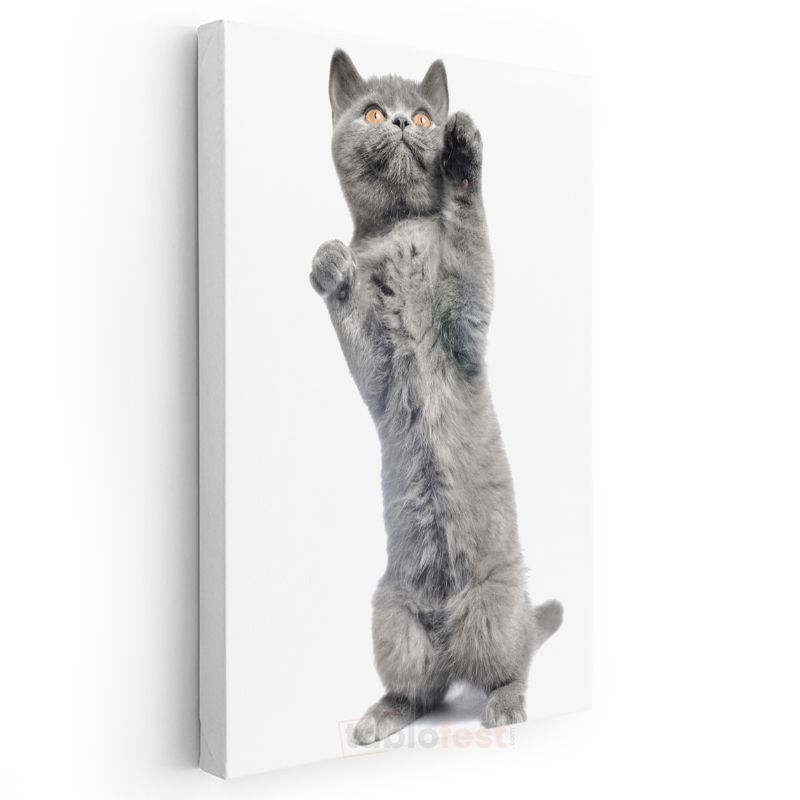 Oyuncu Gri Kedi - İki Ayak Üstünde Şirinlik Kanvas Tablo