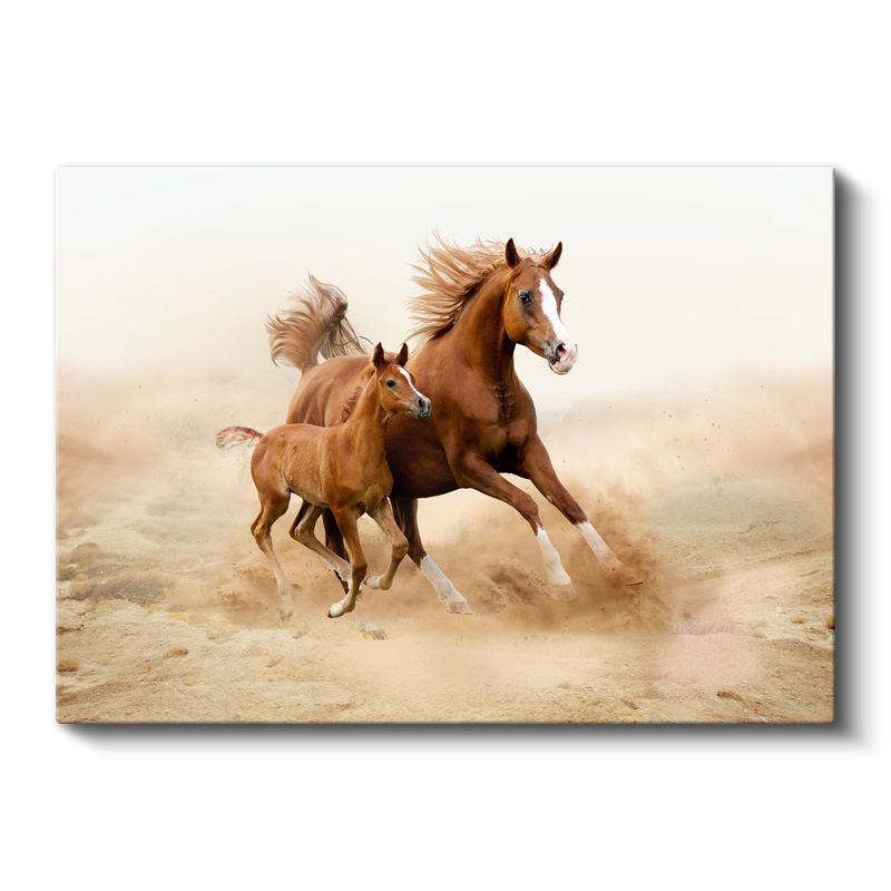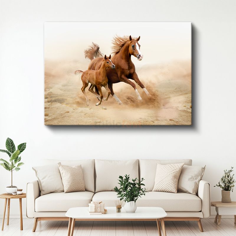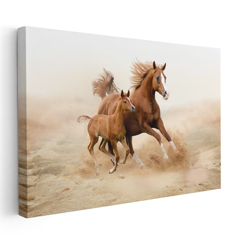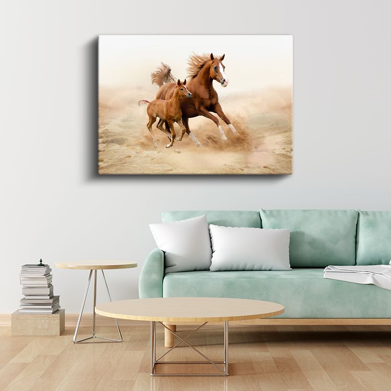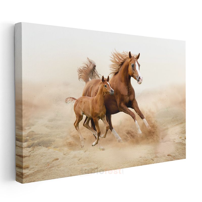 Özgür Atlar - Kumsal Koşusunda Anne ve Yavru Kanvas Tablo
