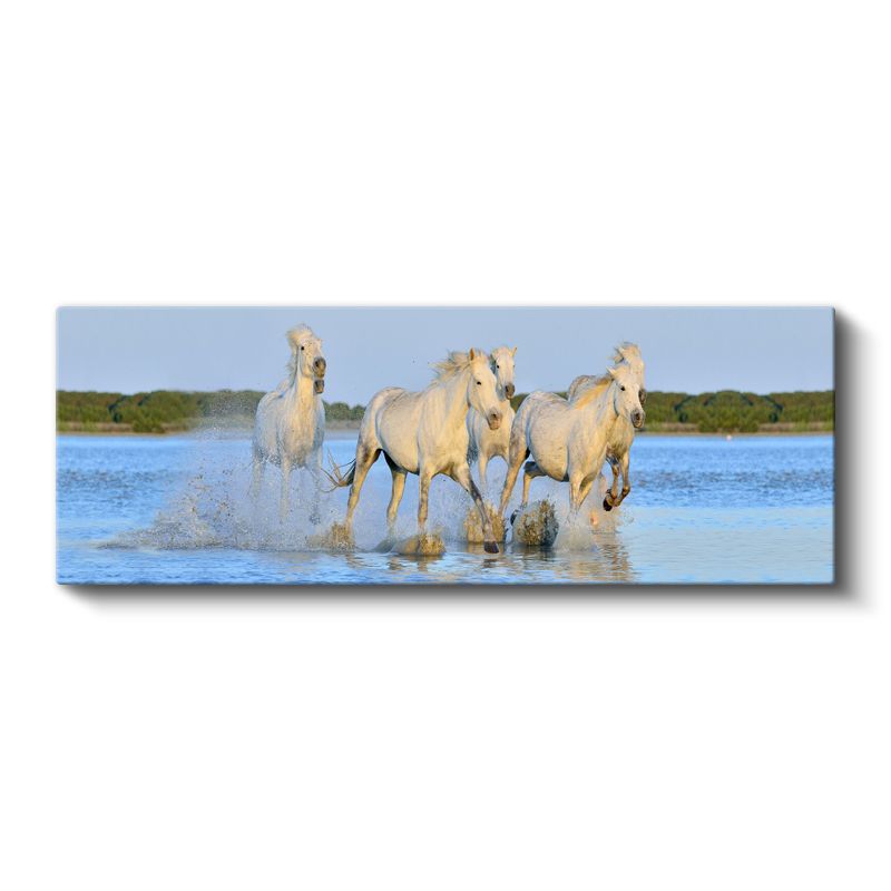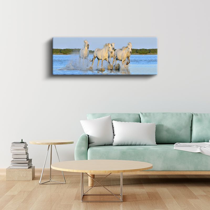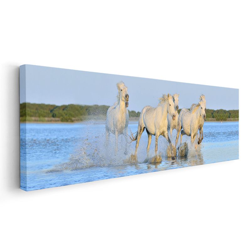 Özgür Atlar - Su İçinde Koşan Beyaz Yabani Atlar Kanvas Tablo