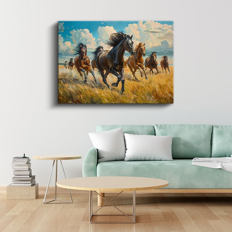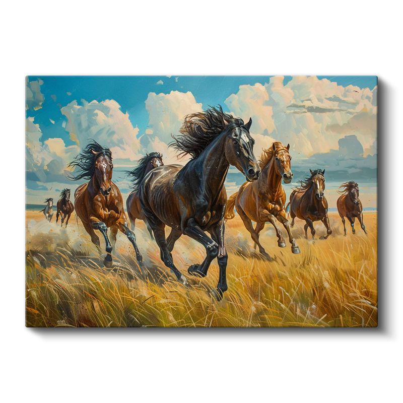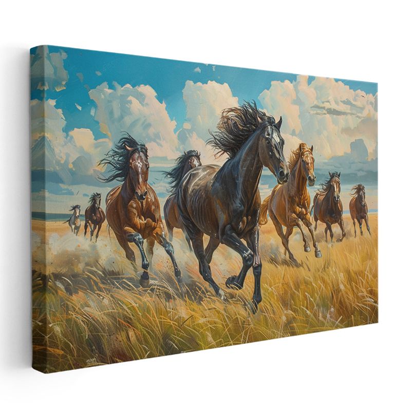 Özgür Sürü - Çayırda Koşan Vahşi Atlar Kanvas Tablo