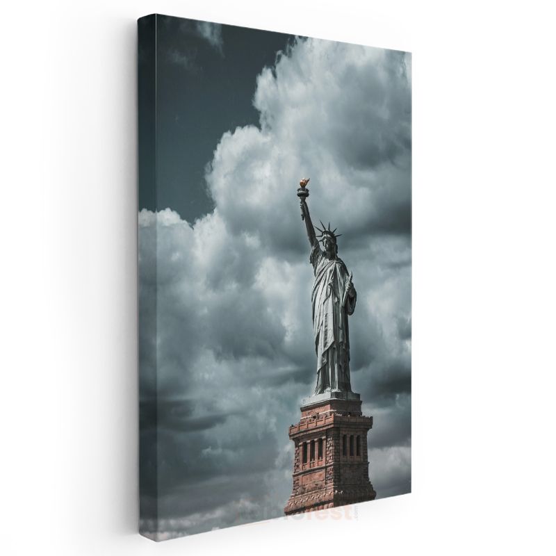 Özgürlük Heykeli - Dramatik Gökyüzü Altında Amerikan Simgesi Kanvas Tablo