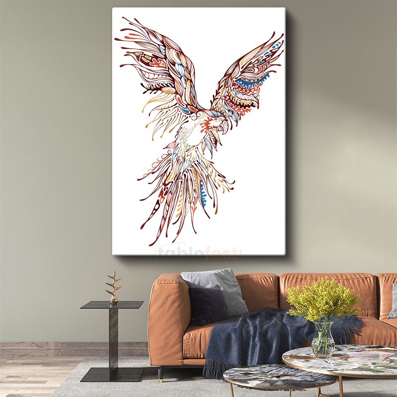 Özgürlük Kartalı - Renkli Çizgilerle Stilize Kuş Deseni Kanvas Tablo