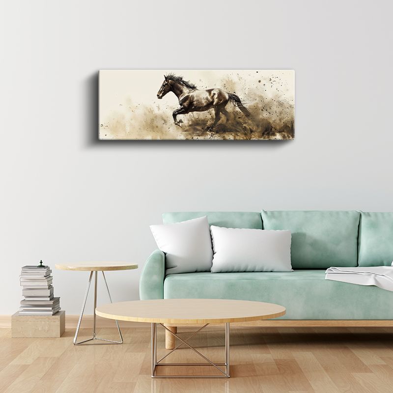 Özgürlük Koşusu - Toz Bulutu İçinde Koşan At Kanvas Tablo