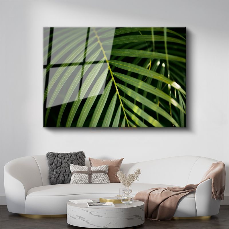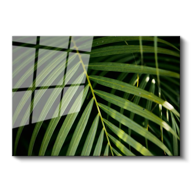 Palmiye Yaprağı - Koyu Fonlu Minimal Cam Tablo