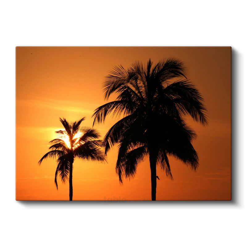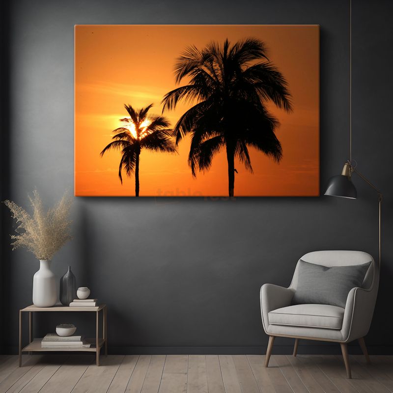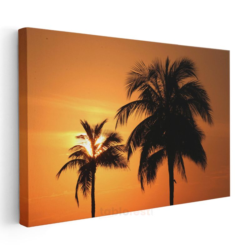 Palmiyeler - Turuncu Gün Batımında Tropik Silüetler Kanvas Tablo
