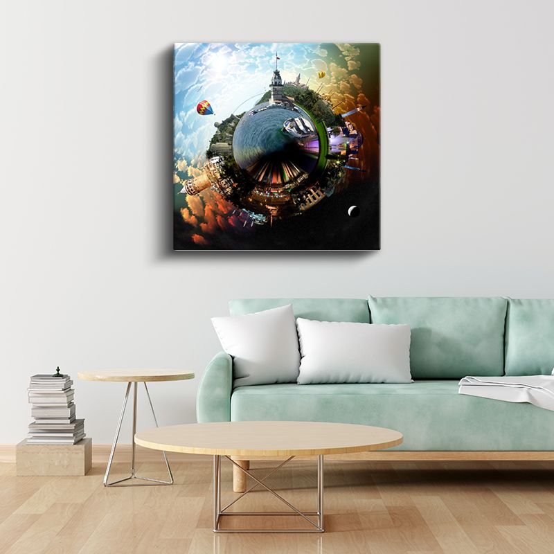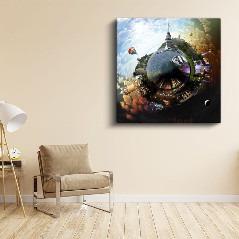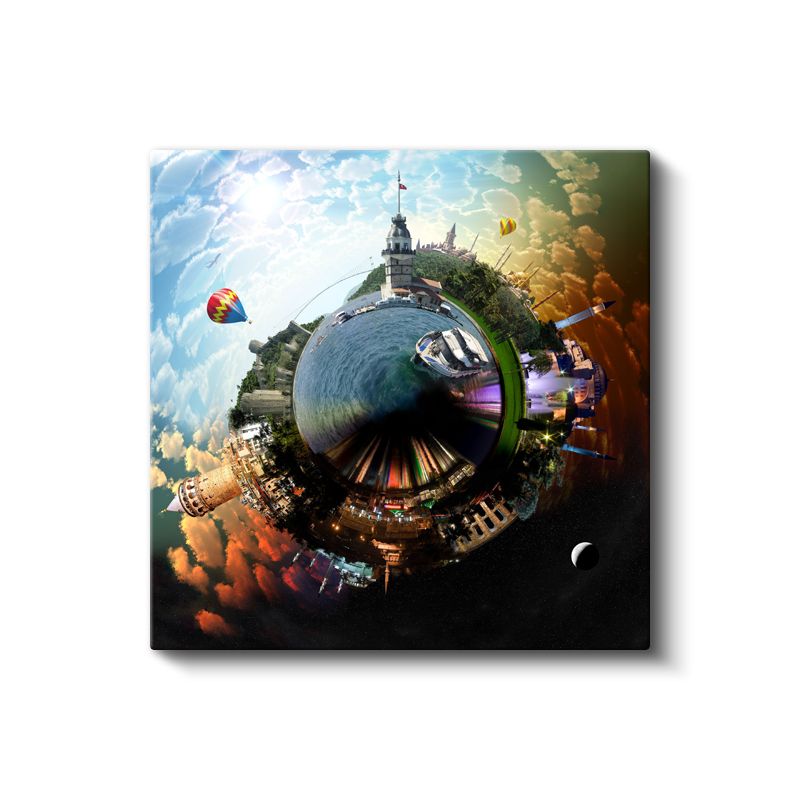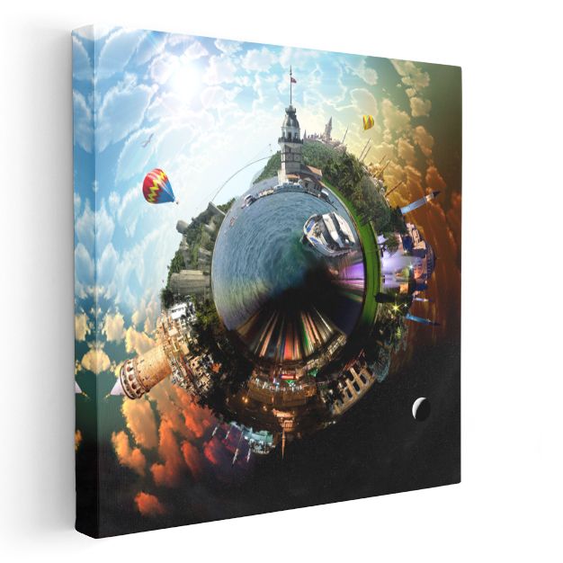 Panoramik Şehir - 360 Derece Küresel Perspektif Kanvas Tablo