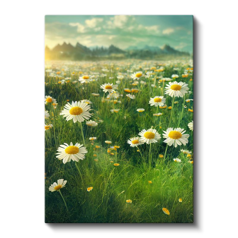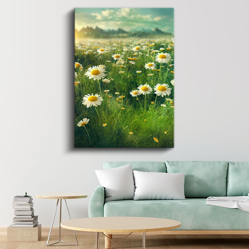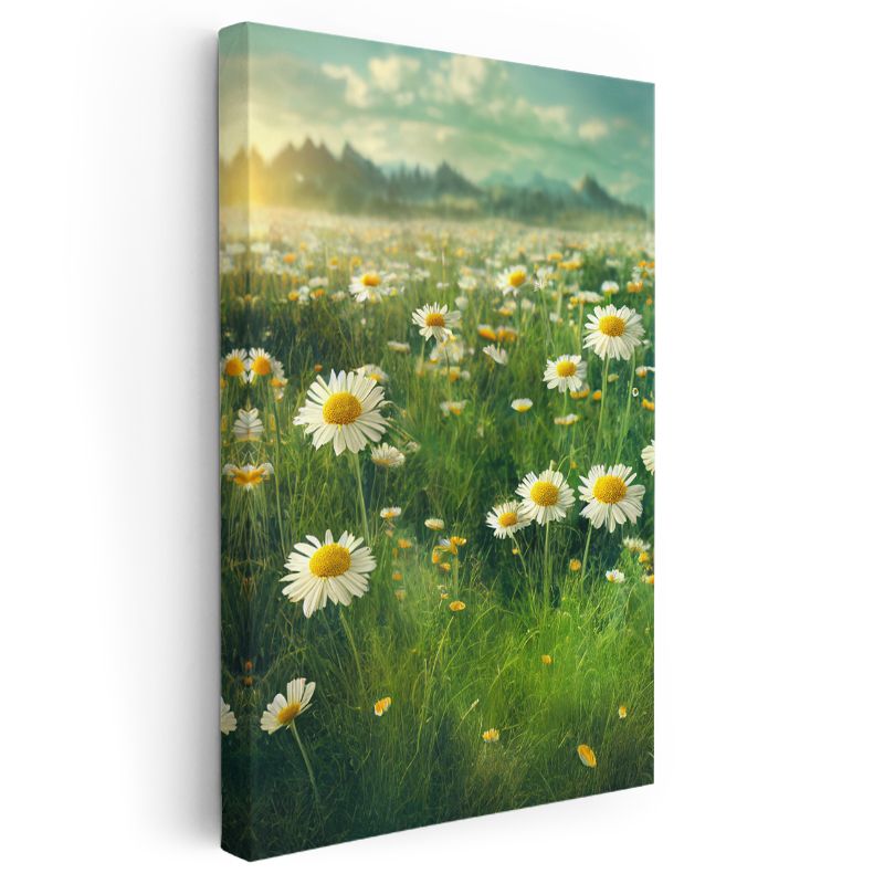 Papatya Çayırı - Dağ Manzaralı Bahar Kanvas Tablo