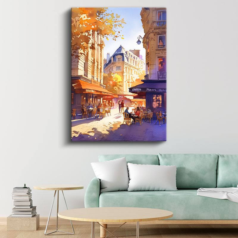Paris Kafeleri - Sonbahar Işığında Tarihi Sokaklar Kanvas Tablo