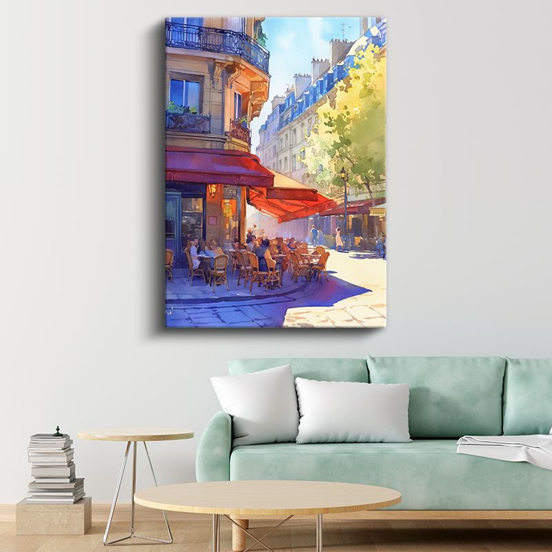 Paris Kafesi - Kırmızı Tenteli Sokak Manzarası Kanvas Tablo