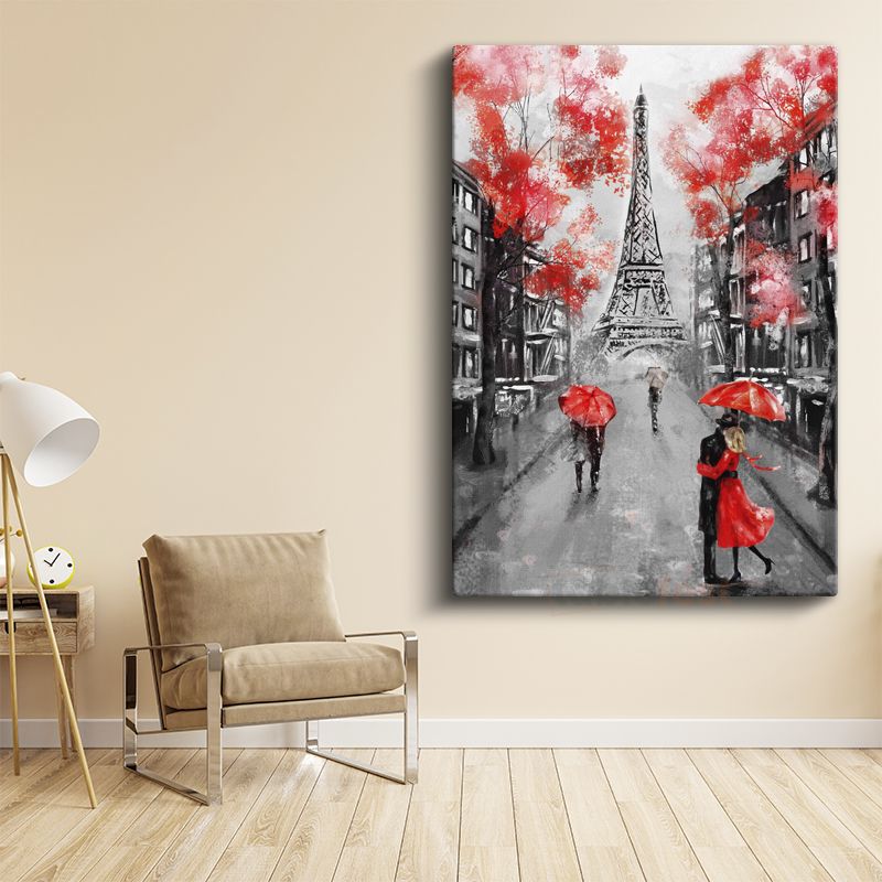 Paris Sokakları - Kırmızı Detaylar Kanvas Tablo