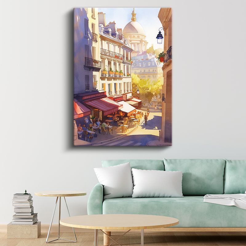 Paris Sokakları - Panthéon Manzaralı Kafe Kültürü Kanvas Tablo