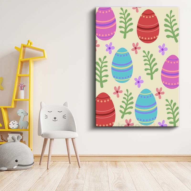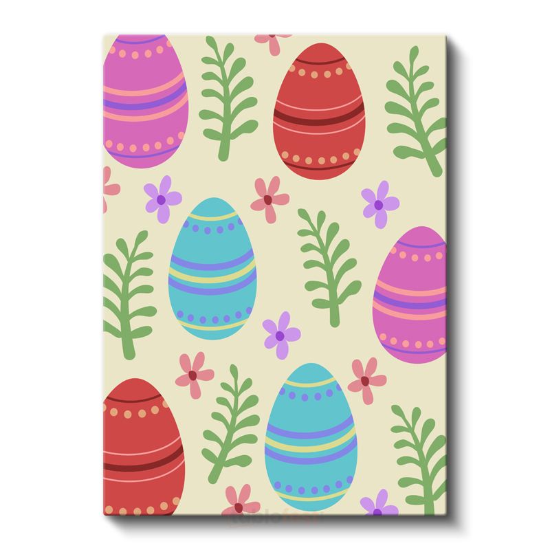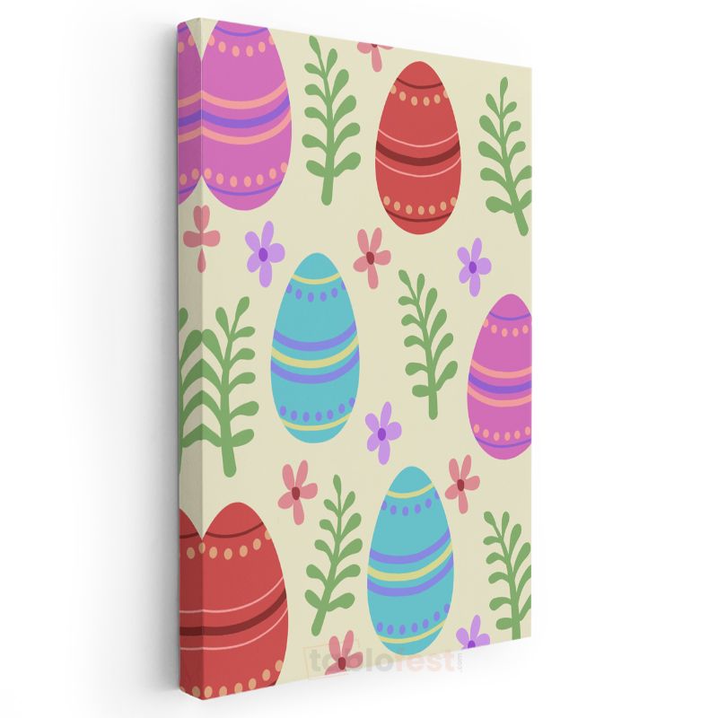 Paskalya Deseni - Renkli Yumurtalar ve Çiçekler Kanvas Tablo