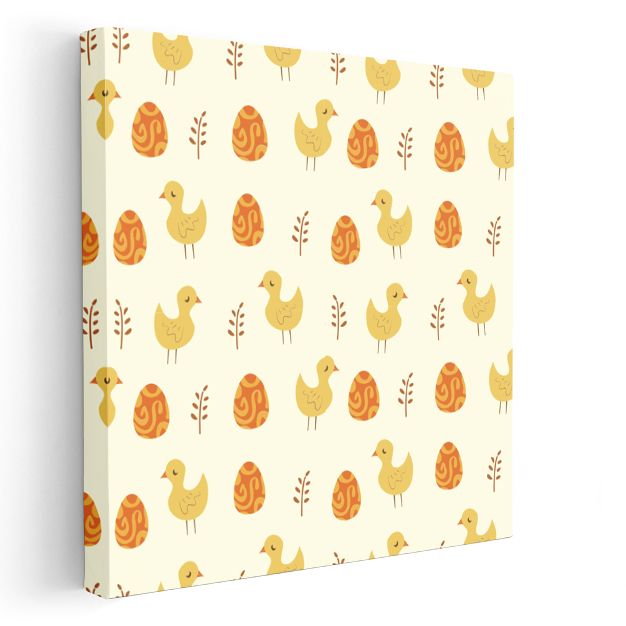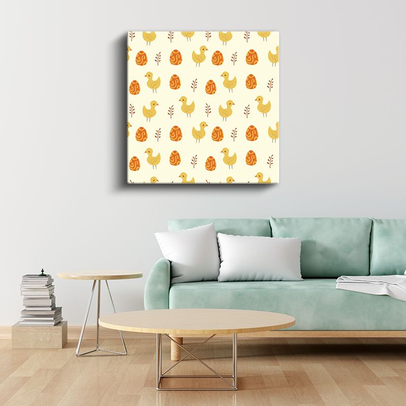 Paskalya Deseni - Sarı Civciv ve Yumurtalar Kanvas Tablo