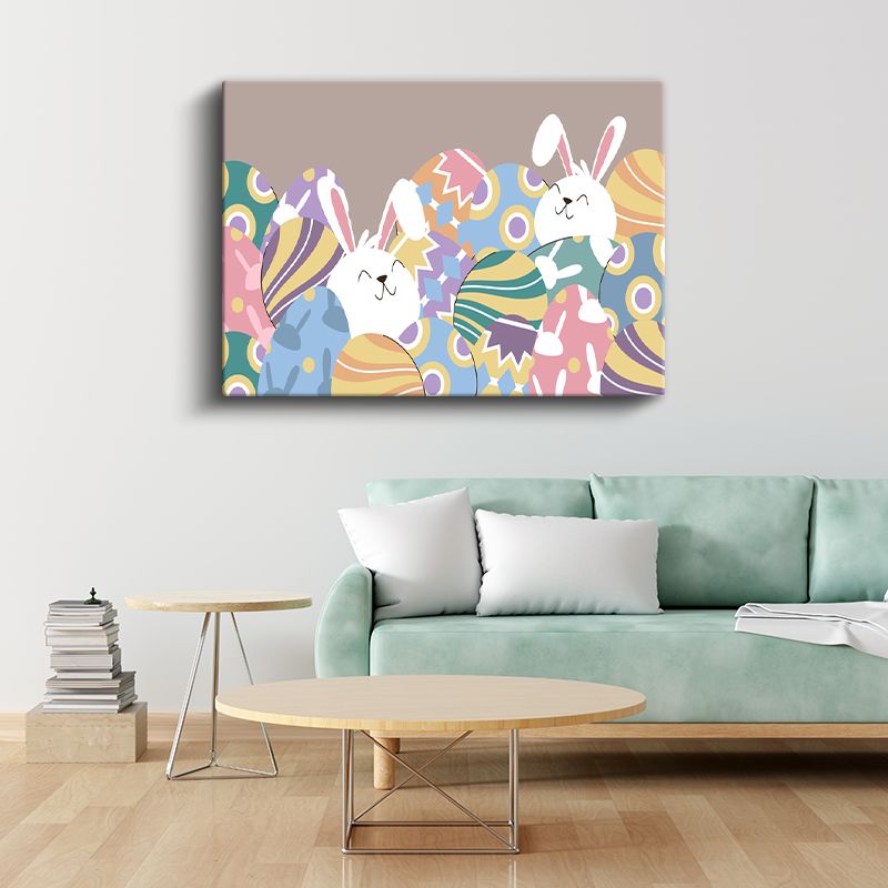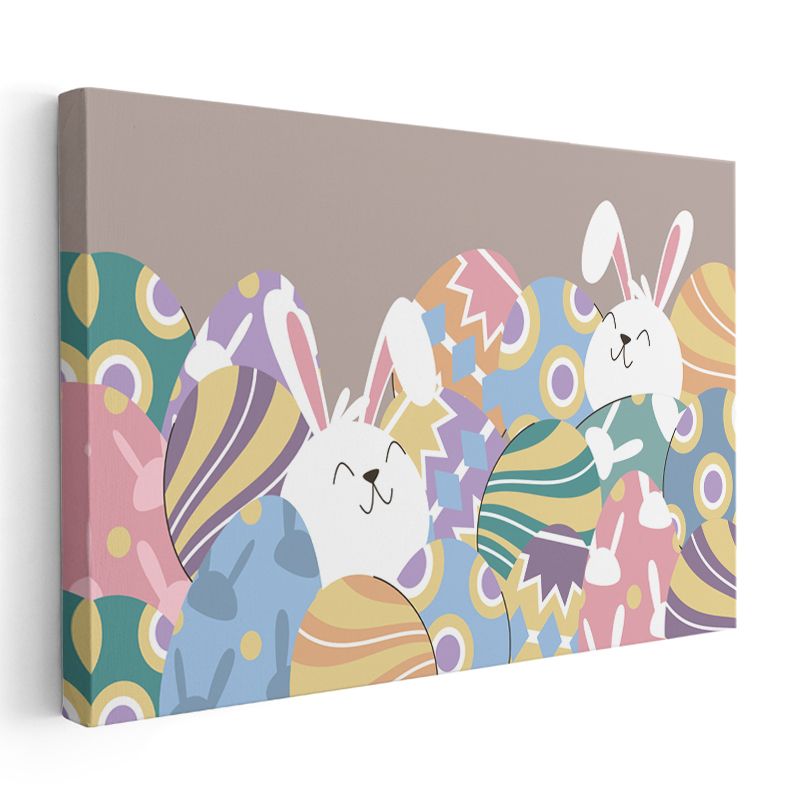 Paskalya Eğlencesi - Tavşanlar ve Yumurtalar Kanvas Tablo