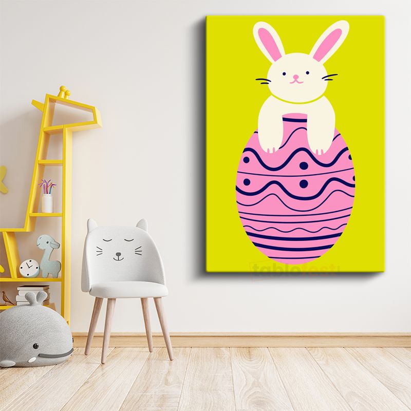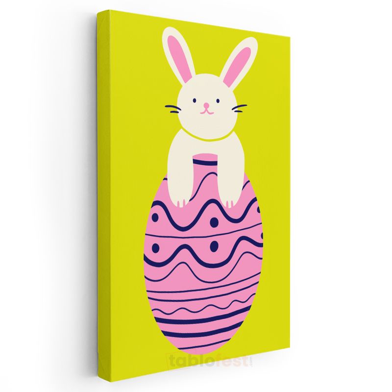 Paskalya Tavşanı - Pembe Yumurta Üzerinde Sevimli Dost Kanvas Tablo