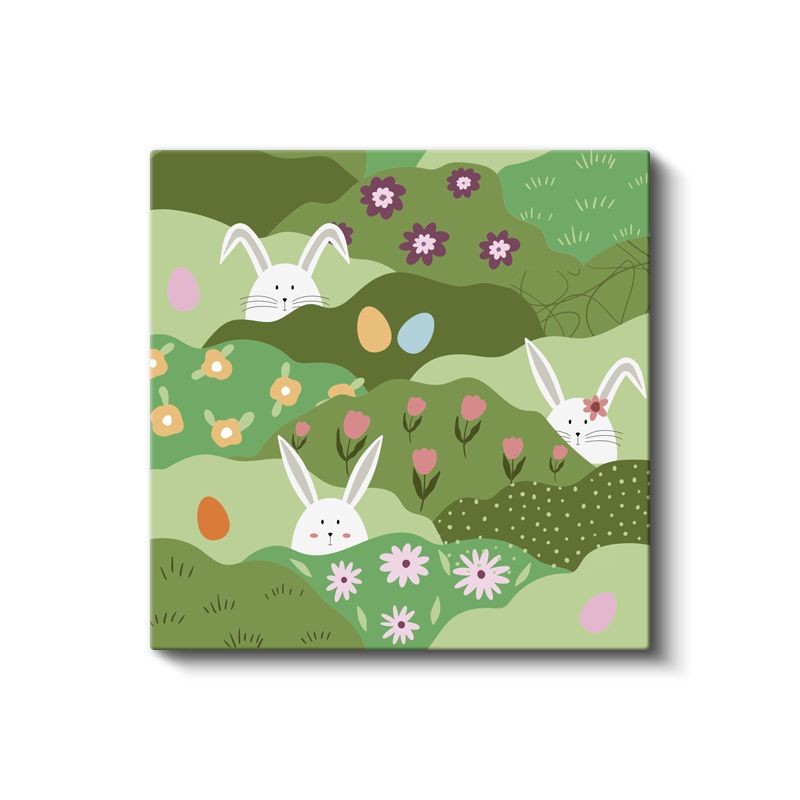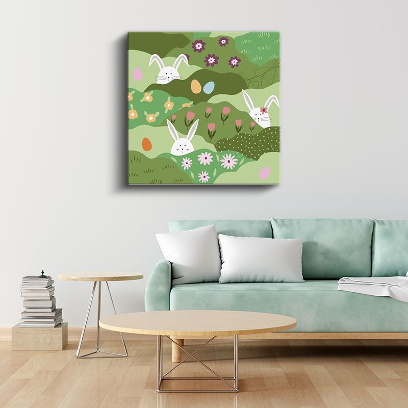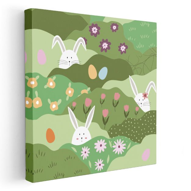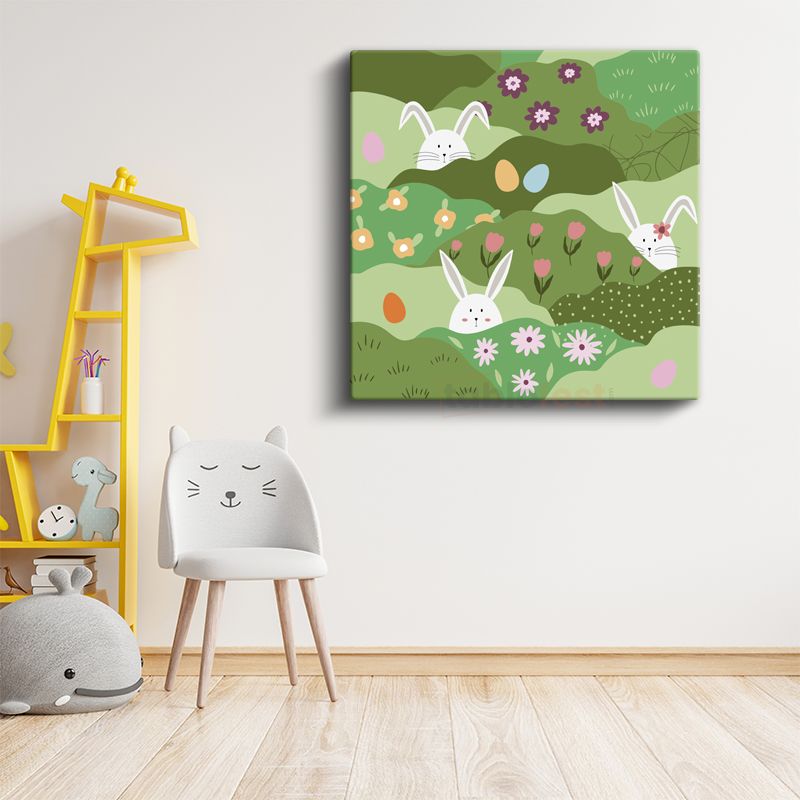 Paskalya Tavşanları - Çiçekli Bahçe Dostları Kanvas Tablo