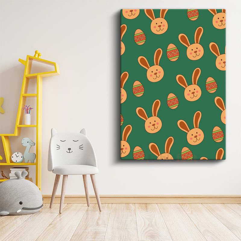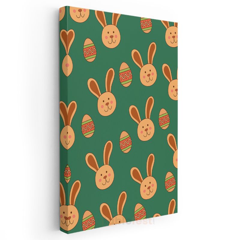 Paskalya Tavşanları - Yeşil Zeminde Neşeli Dostlar Kanvas Tablo
