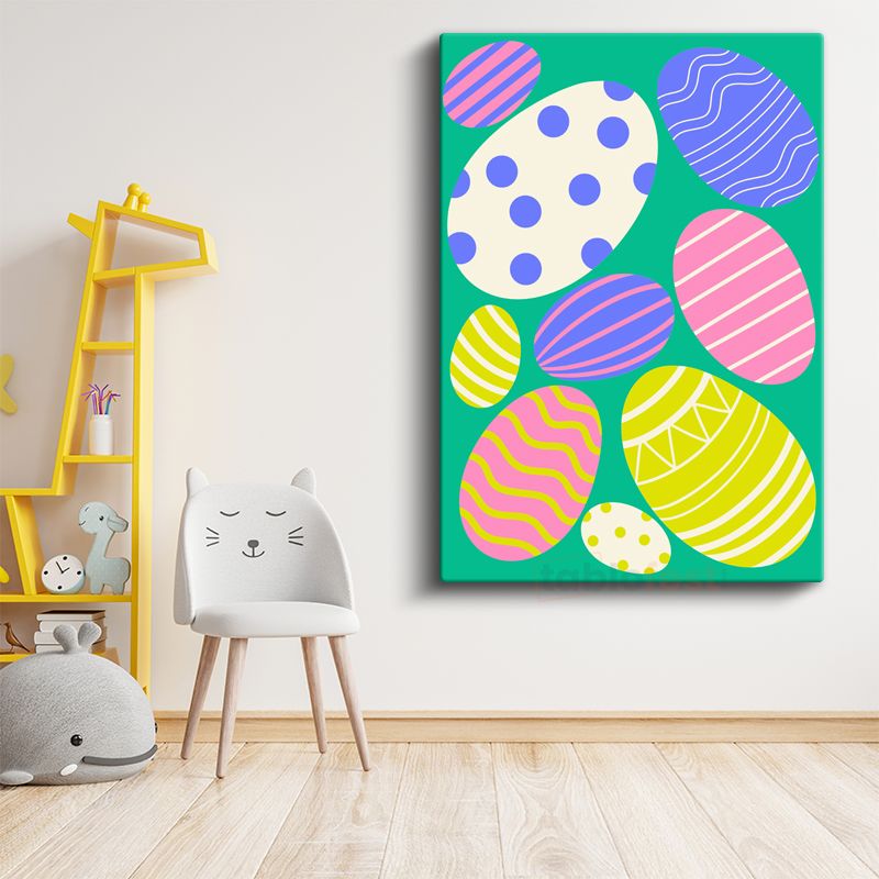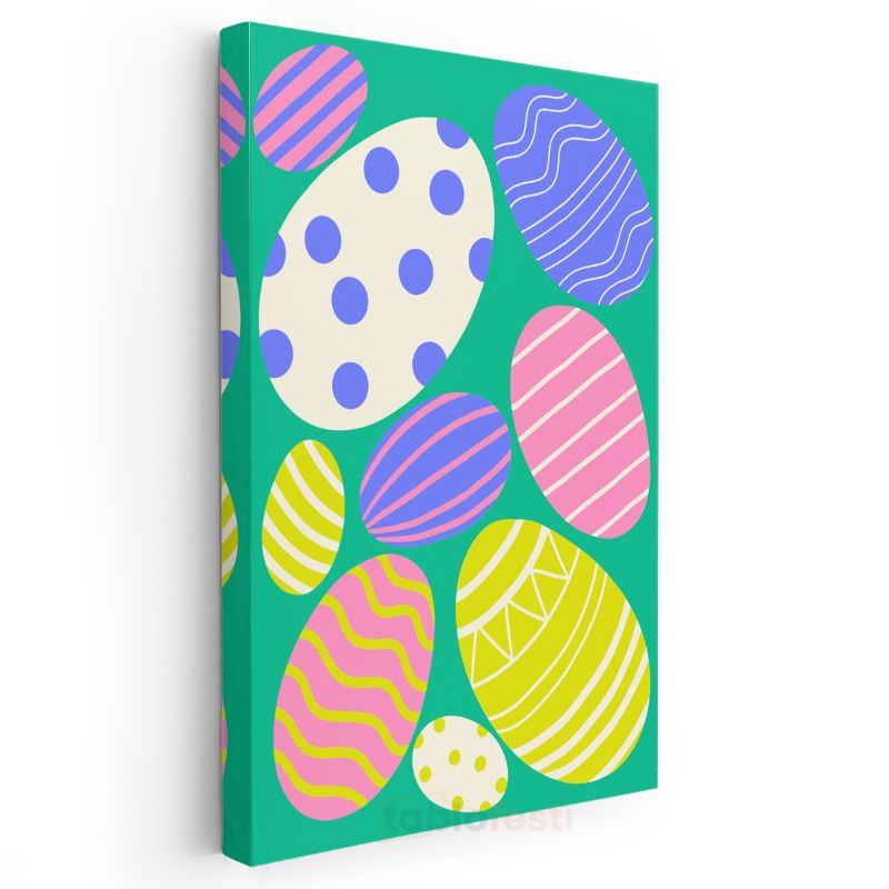 Paskalya Yumurtaları - Yeşil Zeminde Renkli Desen Kanvas Tablo