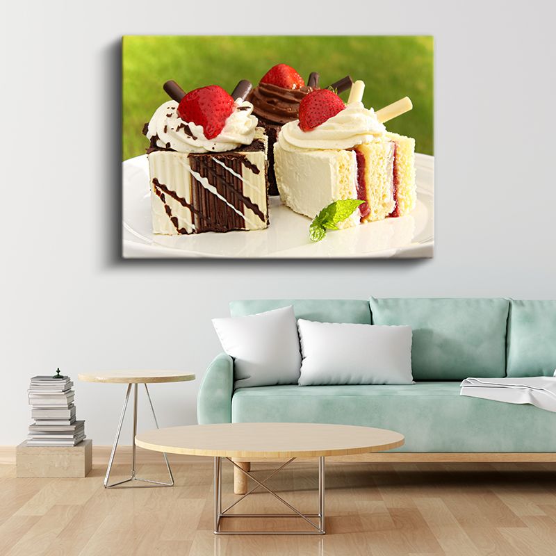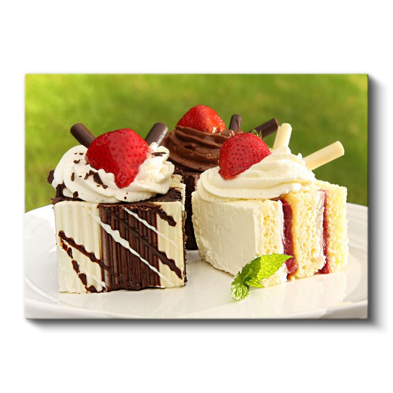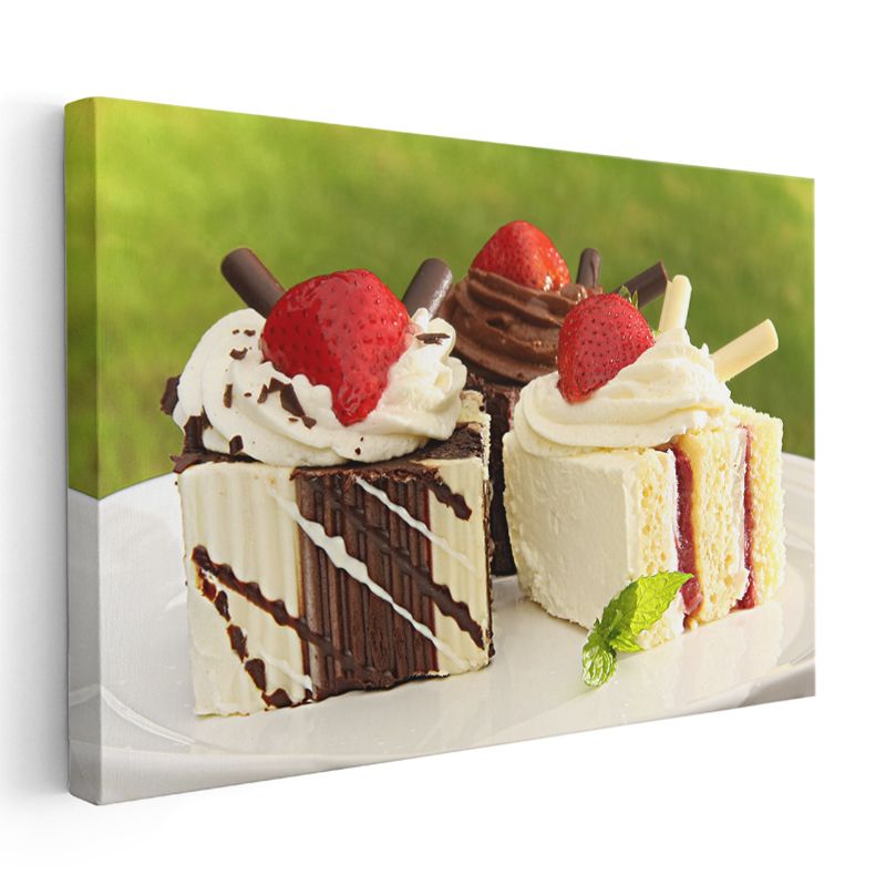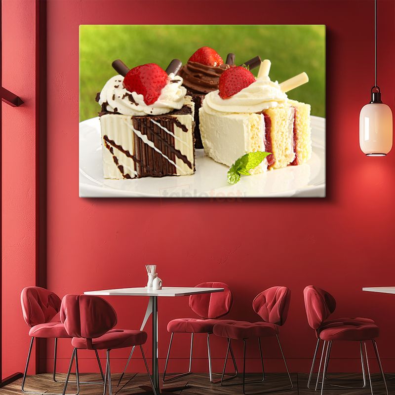 Pasta Dilimleri - Çilekli Tatlı Çeşitleri Kanvas Tablo