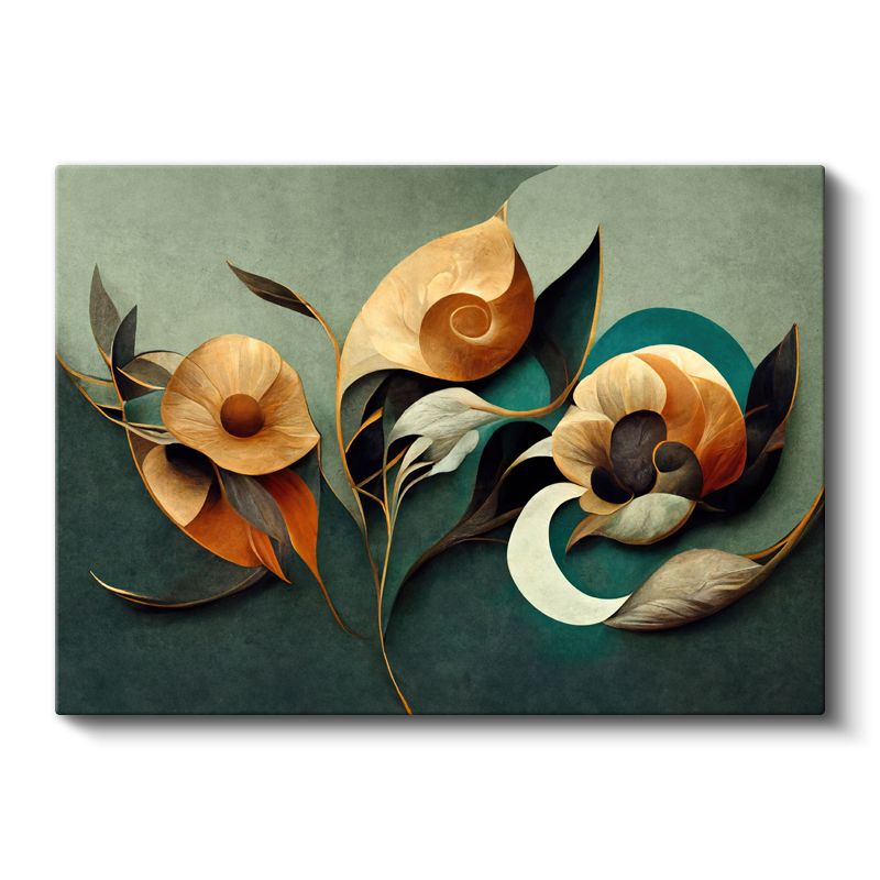 Pastel Çiçekler - Mavi ve Bej Tonlu Çiçek Kompozisyonu Kanvas Tablo
