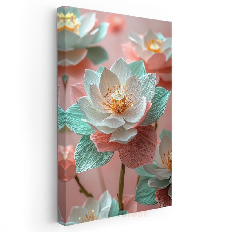 Pastel Nilüfer Çiçeği - Romantik Çok Katmanlı Kanvas Tablo