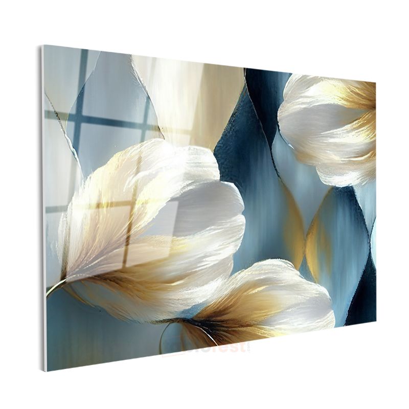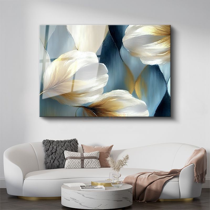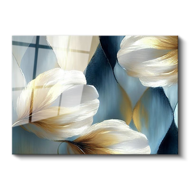 Pastel Şakayıklar - Mavi Fonda Zarif Çiçek Buketi Cam Tablo