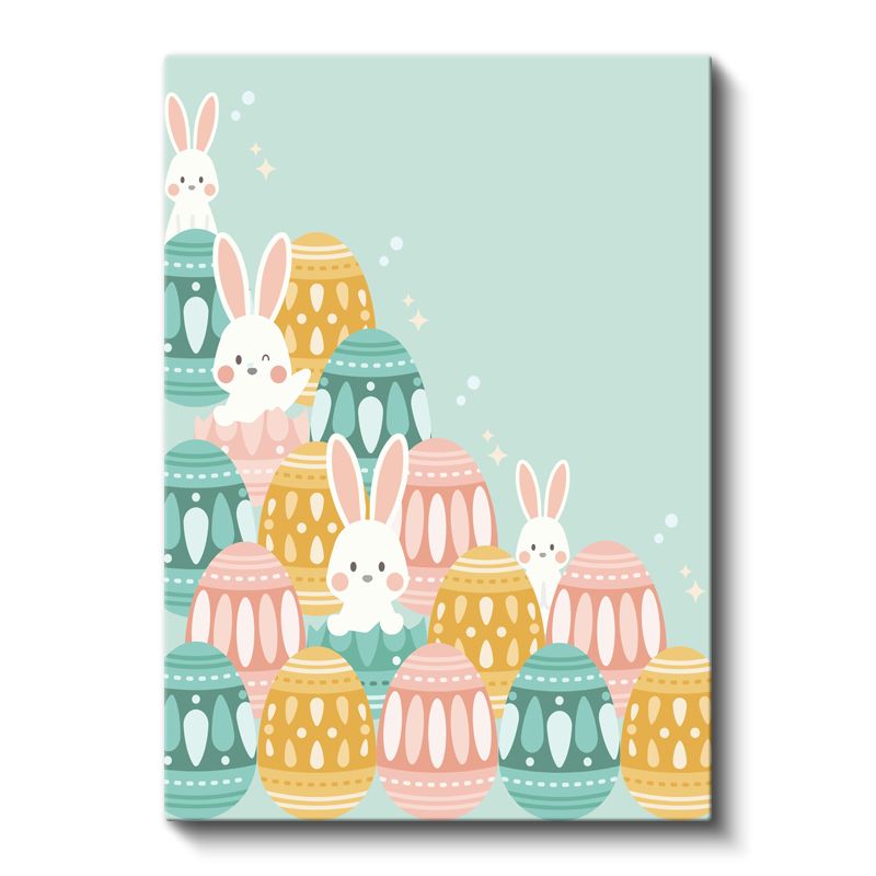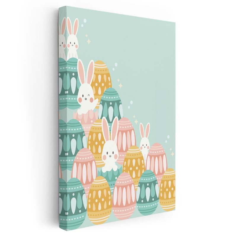 Pastel Tavşanlar - Sevimli Vektörel Paskalya Kanvas Tablo