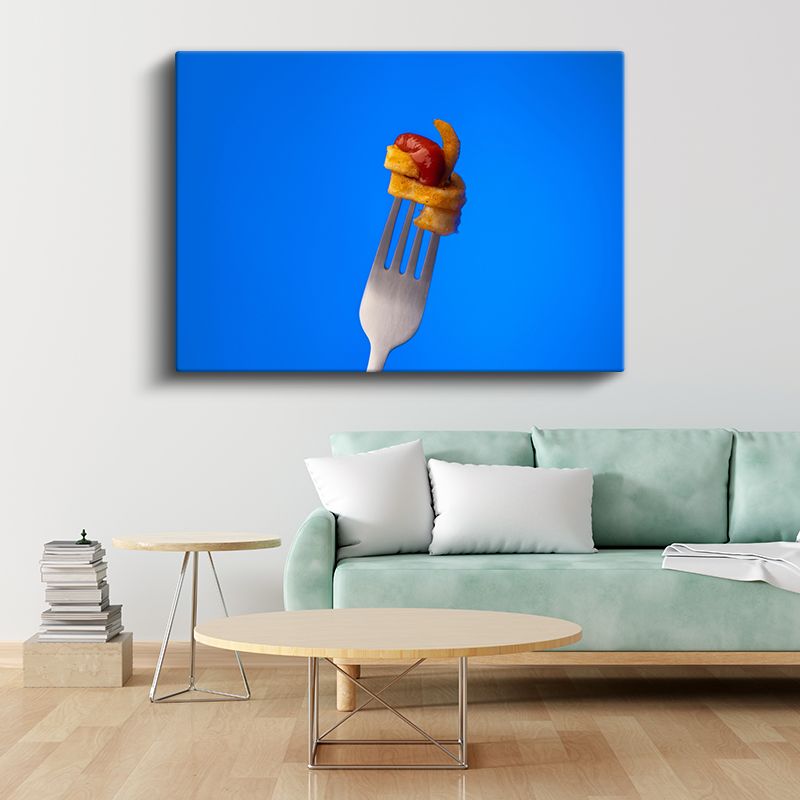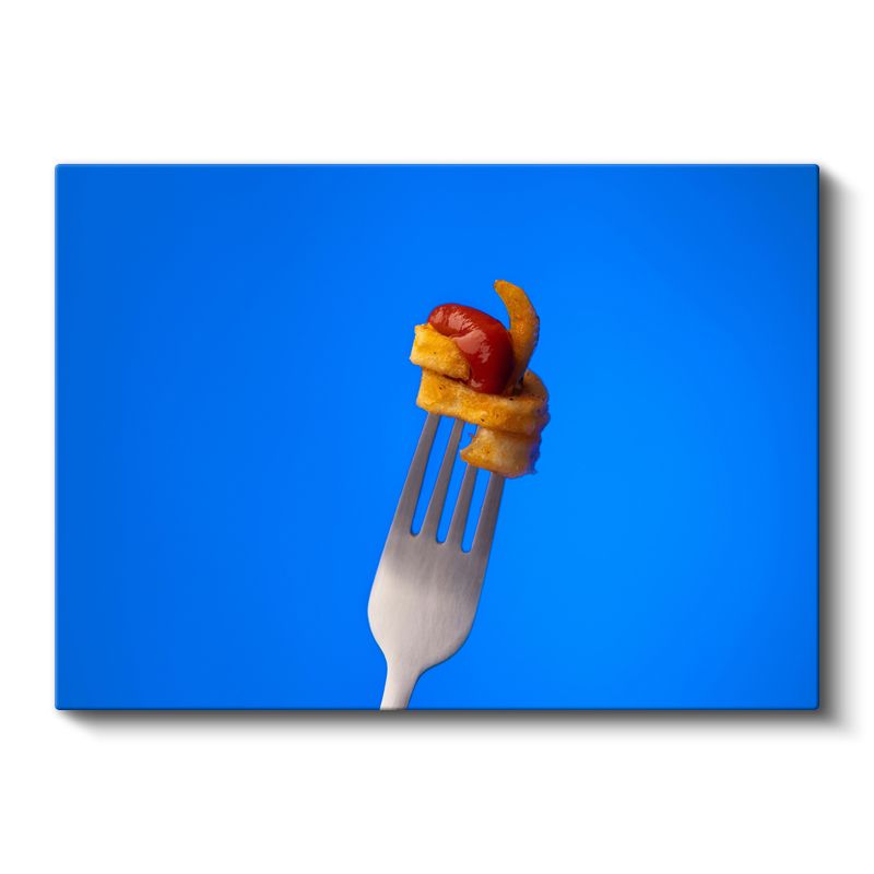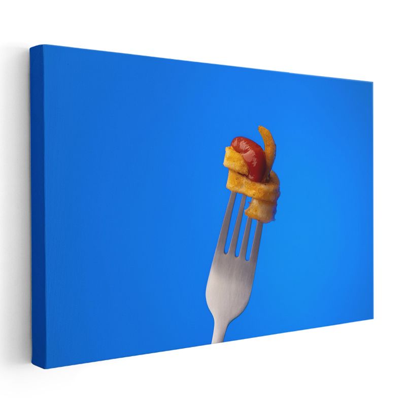 Patates ve Sosis - Çatal Üzerinde Fast Food Lezzeti Kanvas Tablo